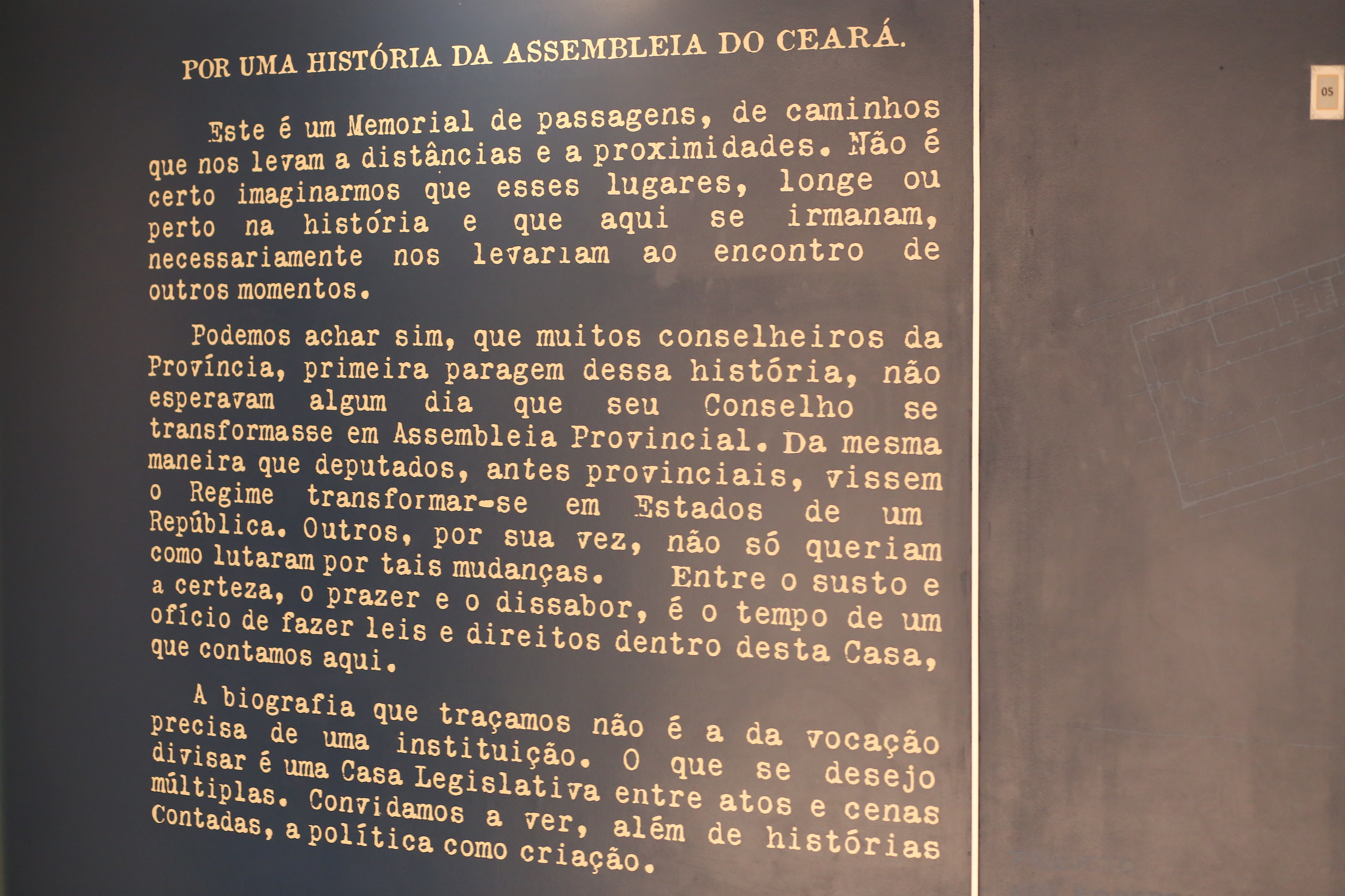 Painel contendo o texto de abertura “Por uma História da Assembleia do Ceará”