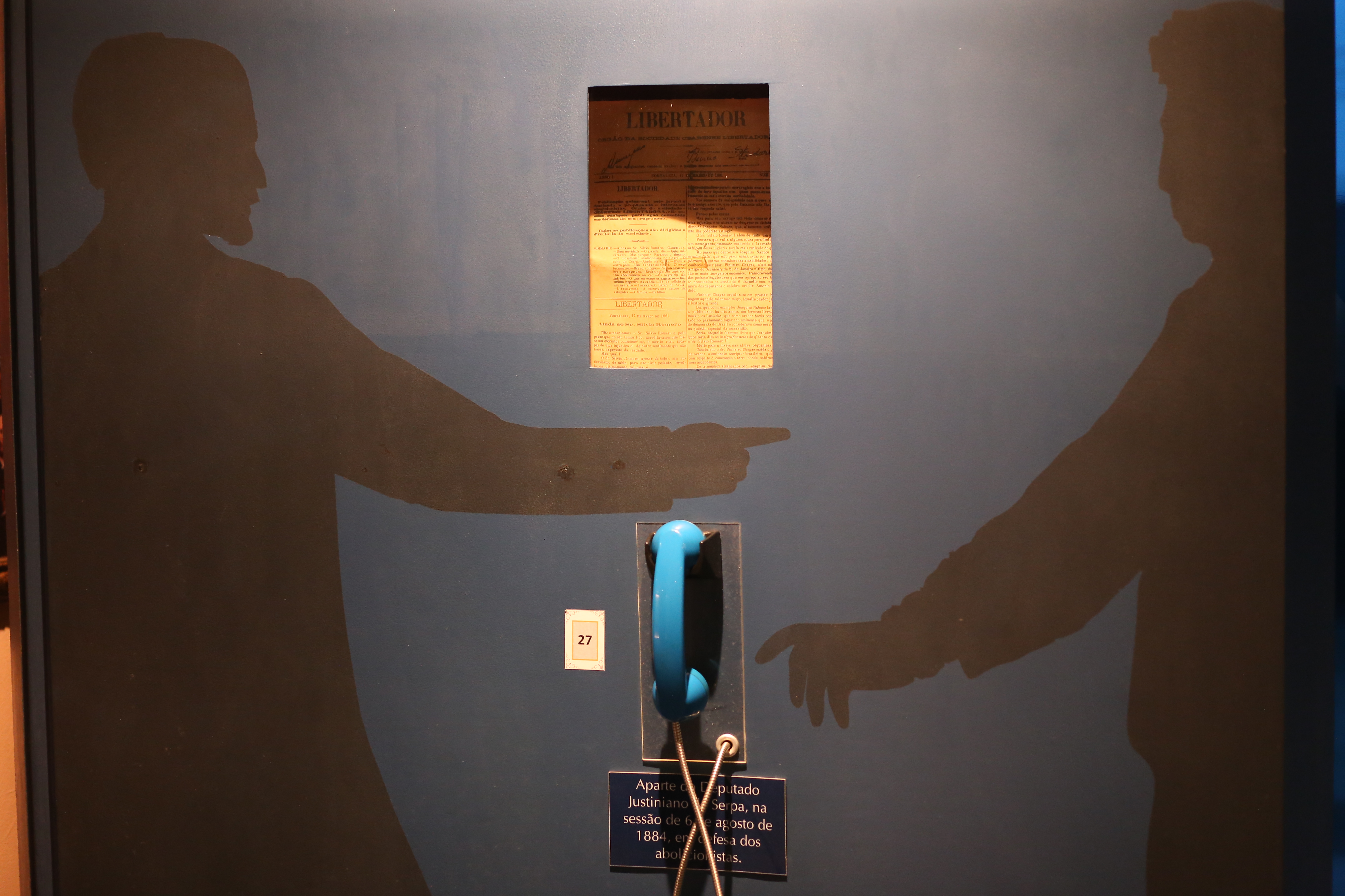 Painel que traz a reprodução em áudio de um aparte do deputado Justiniano de Serpa em defesa dos abolicionistas