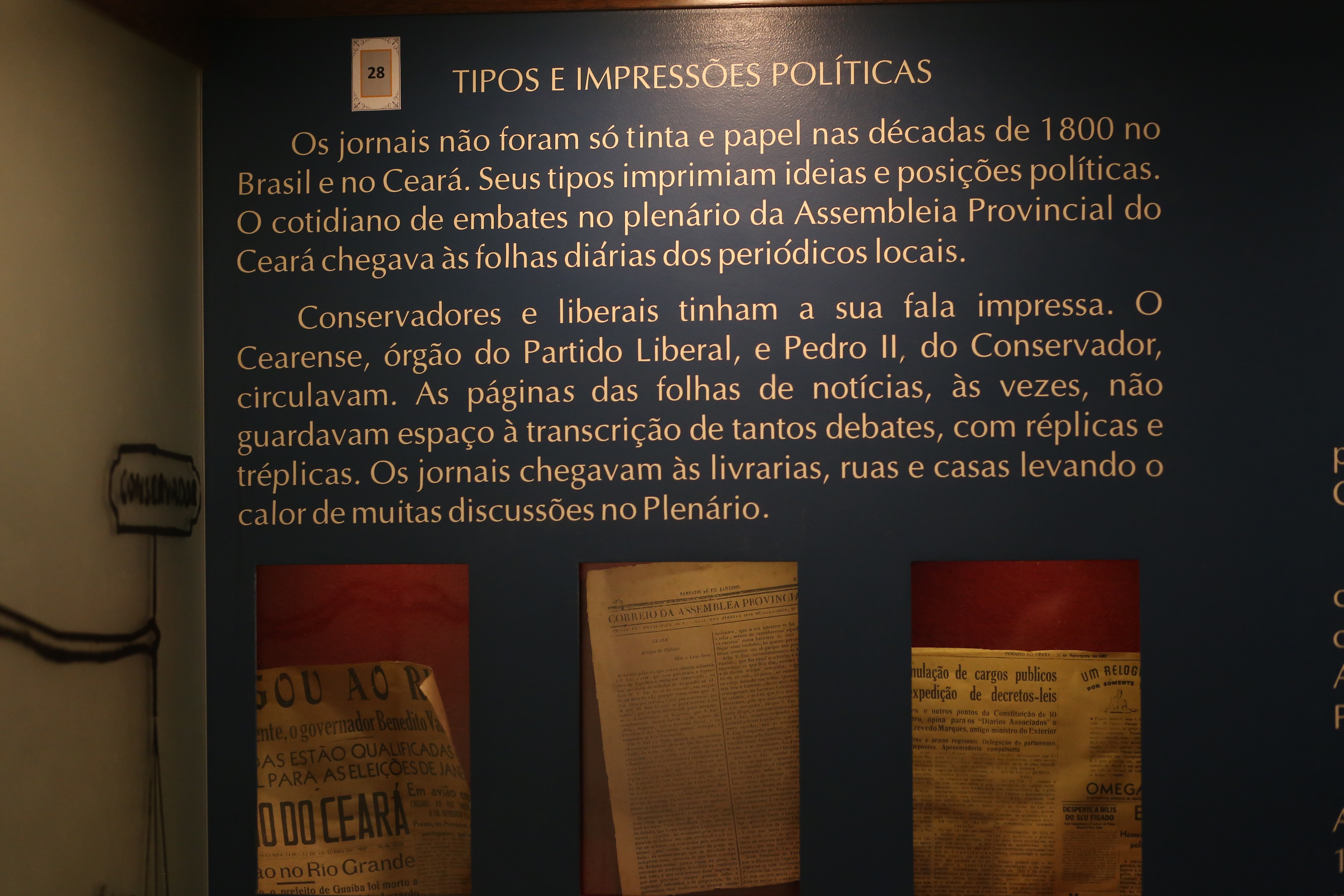 Painel “Tipos e Impressões Políticas”, que mostra a publicidade que os jornais davam aos embates no plenário da Assembleia