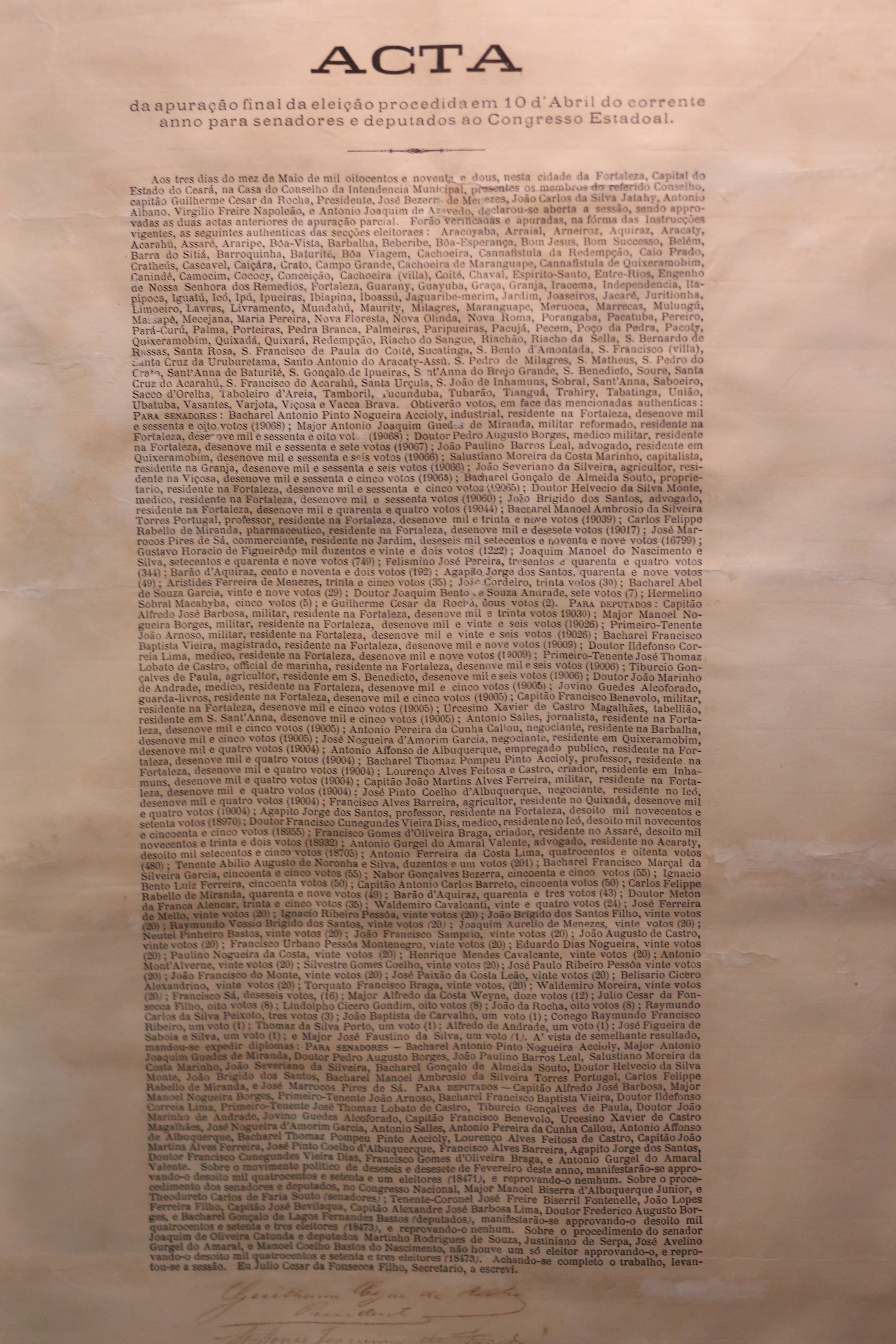 Reprodução de Ata de Apuração Eleitoral em 10 de abril de 1892