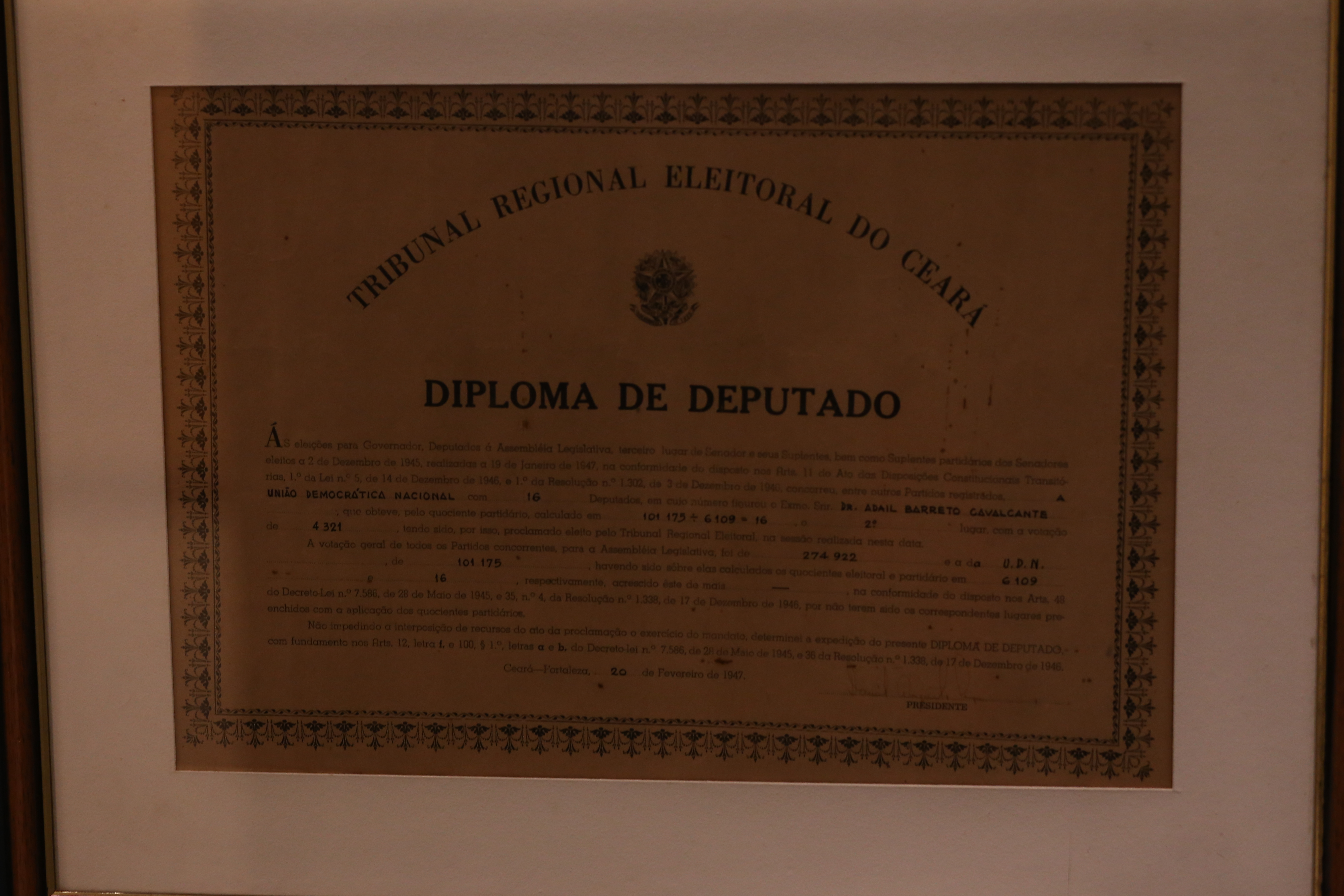 Diploma de deputado, documento que certifica a eleição e posse de um representante parlamentar