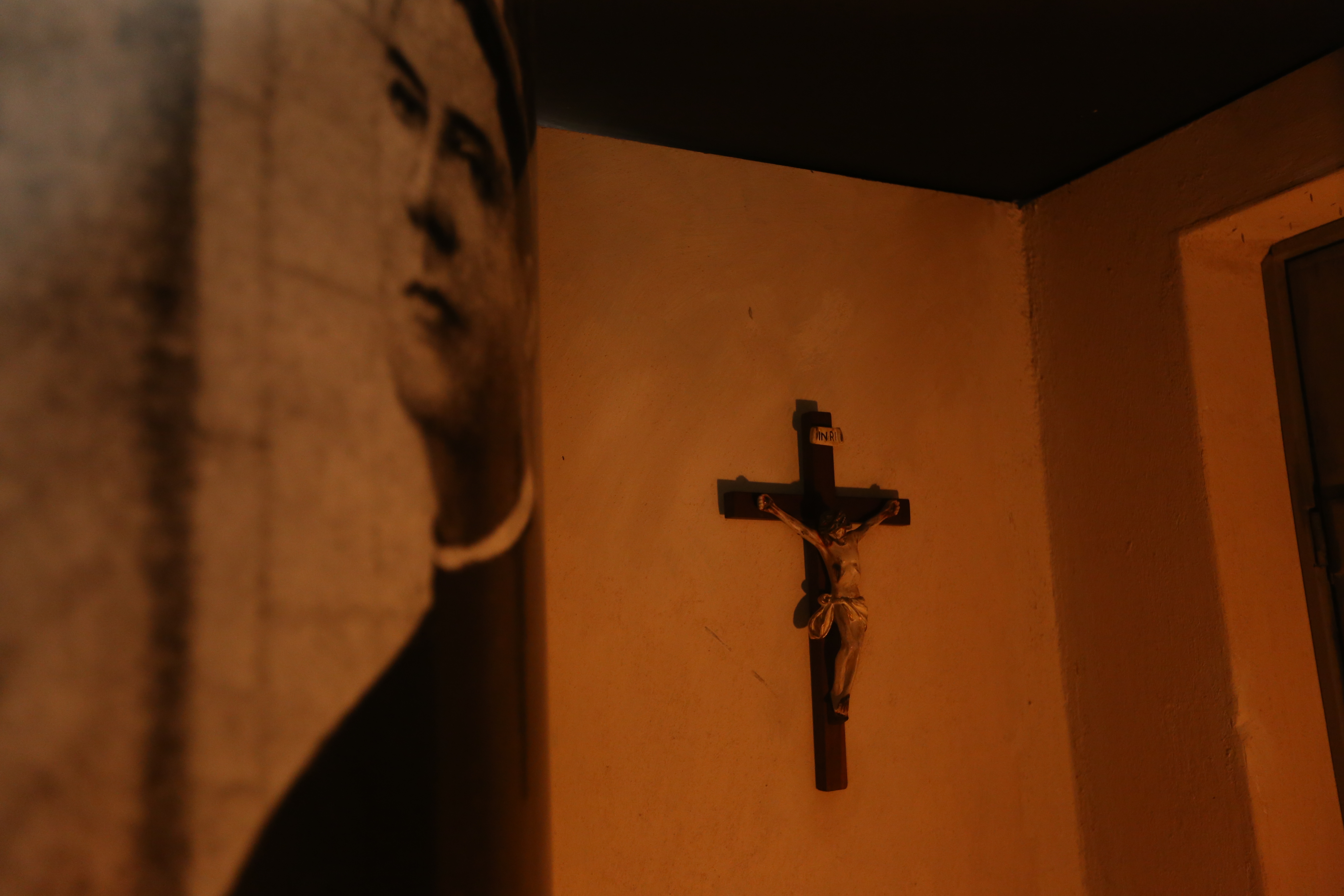 Crucifixo que adorna a representação do quarto de um sacerdote