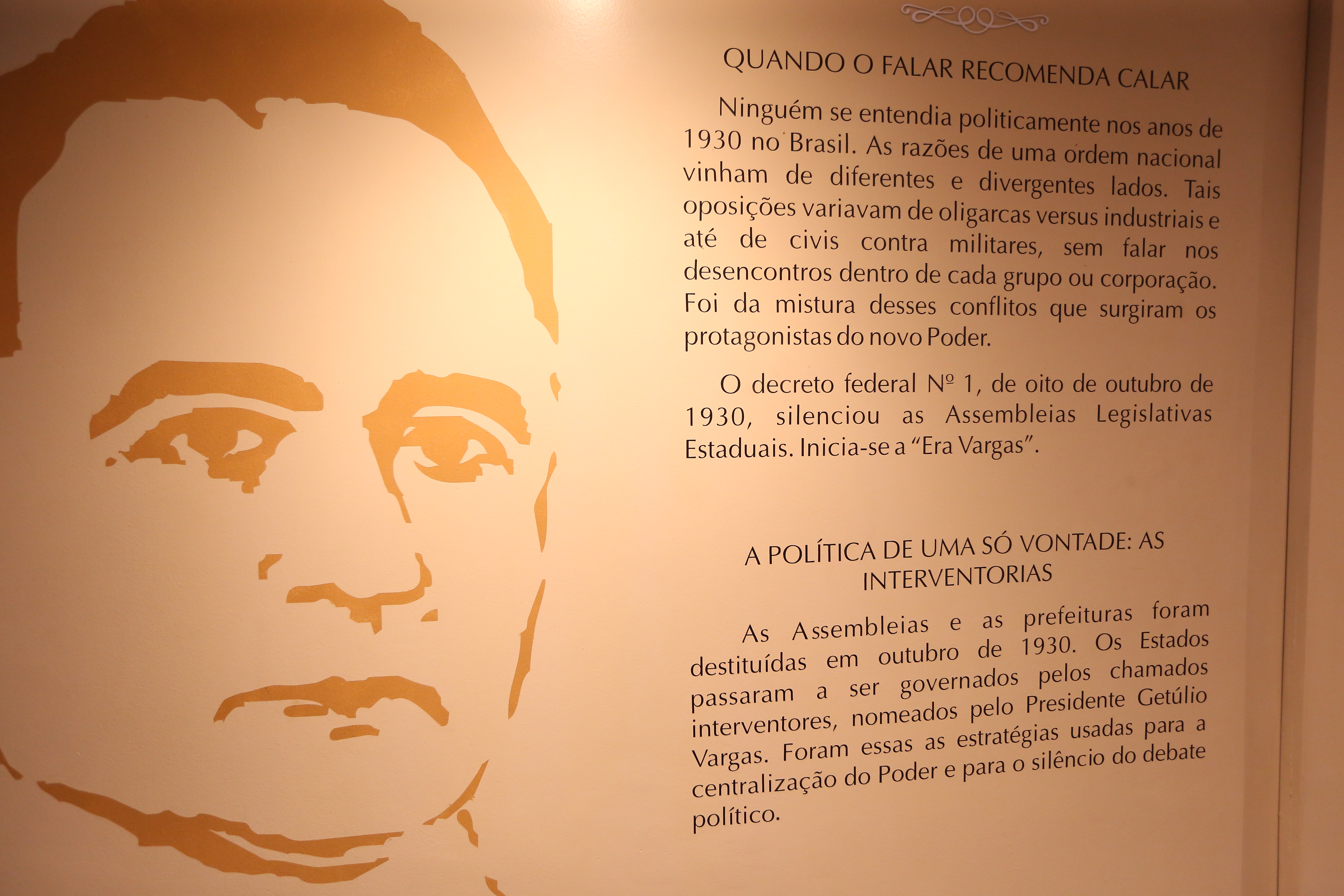 Painel “Quando o falar recomenda calar”, que resgata a história do governo de Getúlio Vargas